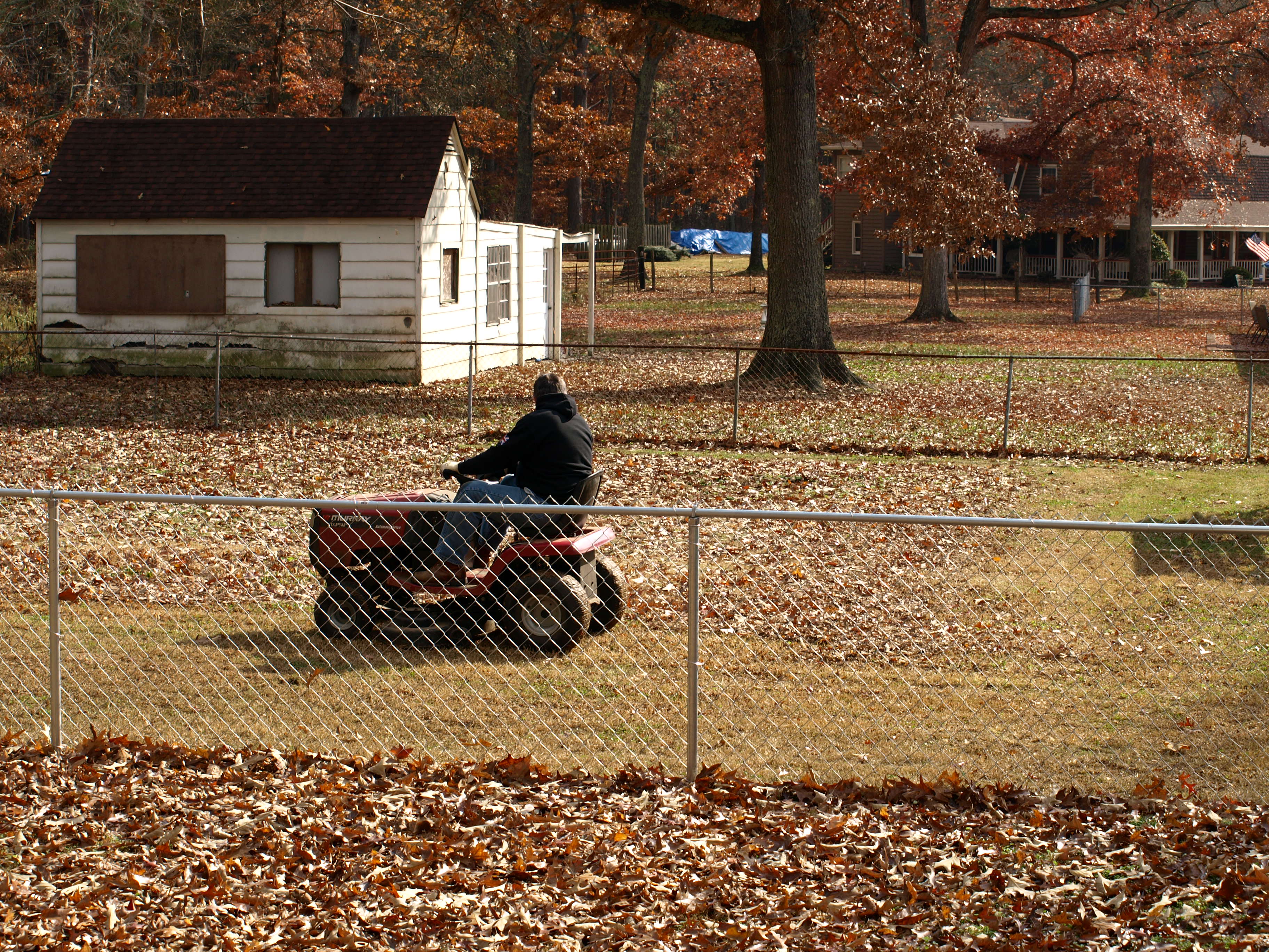 Mowing the acre of leaves to clean them up. This is almost a whole day’s endeavor. BTW, He has wanted a riding mower for a very long time. However, we did not need one in California. Now he has one, and let me tell ya, it is not as quick and easy as it looks on TV. In his words, “This is too much like work!”