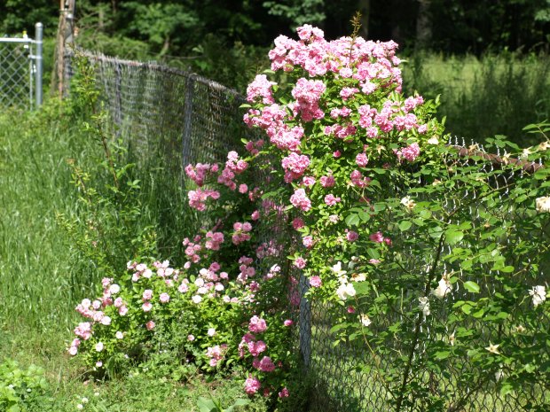 Looking for a another subject for picture taking I stroll over and find that my Peggy Martin pink rose climber has exploded all over the fence! This is the famous antique climbing rose that survived Hurricane Katrina when all else in the area was destroyed. Apparently all that salty water just couldn’t do her in! The bush has been propagated extensively and portions of the sale of Peggy Martin have been used to rebuild and restore the city parks and gardens in New Orleans, LA!