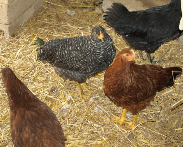 There are two Hennies and one Roo. The Roo is hysterical! Each morning for the past week Grayson crows at the sound of my approach. Then Roo answers back with a long monosyllable “OOOOOOOOOOOOOOOOOO!” Just makes me chuckle every time.