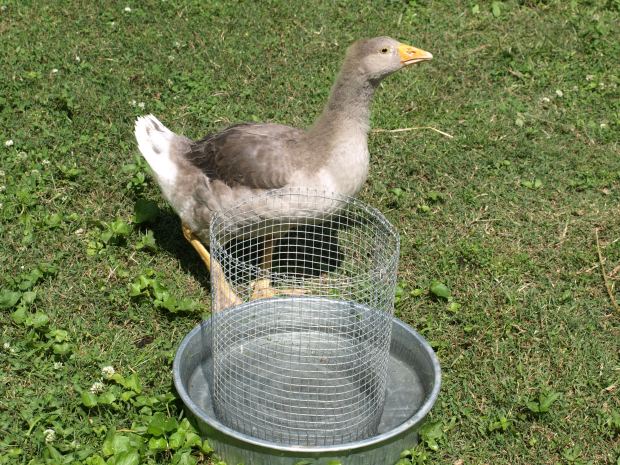 “We are tired of the geese coming into our run, muddying up our water, and making such an unsightly poo mess. Why, its positively GREEN!”