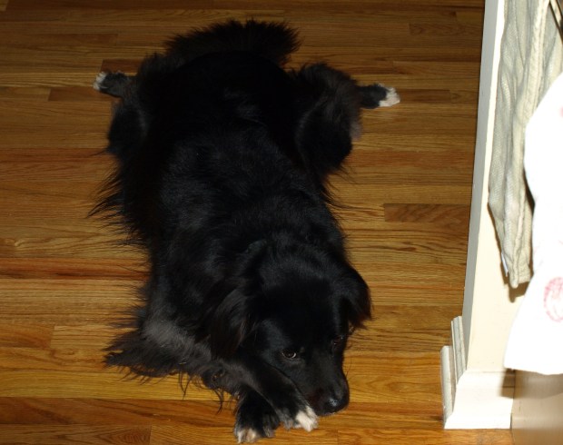 I ask you, “Is he not pathetic looking?”  It is an hour and a half later and he hasn’t moved,  “Good boy!” I tell him.