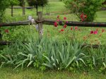 Later when the rain let up and the sun pretended to burn through the clouds, we peeked at the gardens from the back deck and from the front porch.  Even with all the pelting from the heavy rain, the flowers showed me their potential and it was amazing!  Lilies, roses, iris, and so much more await me when we finally move up on the mountain.  And get this!