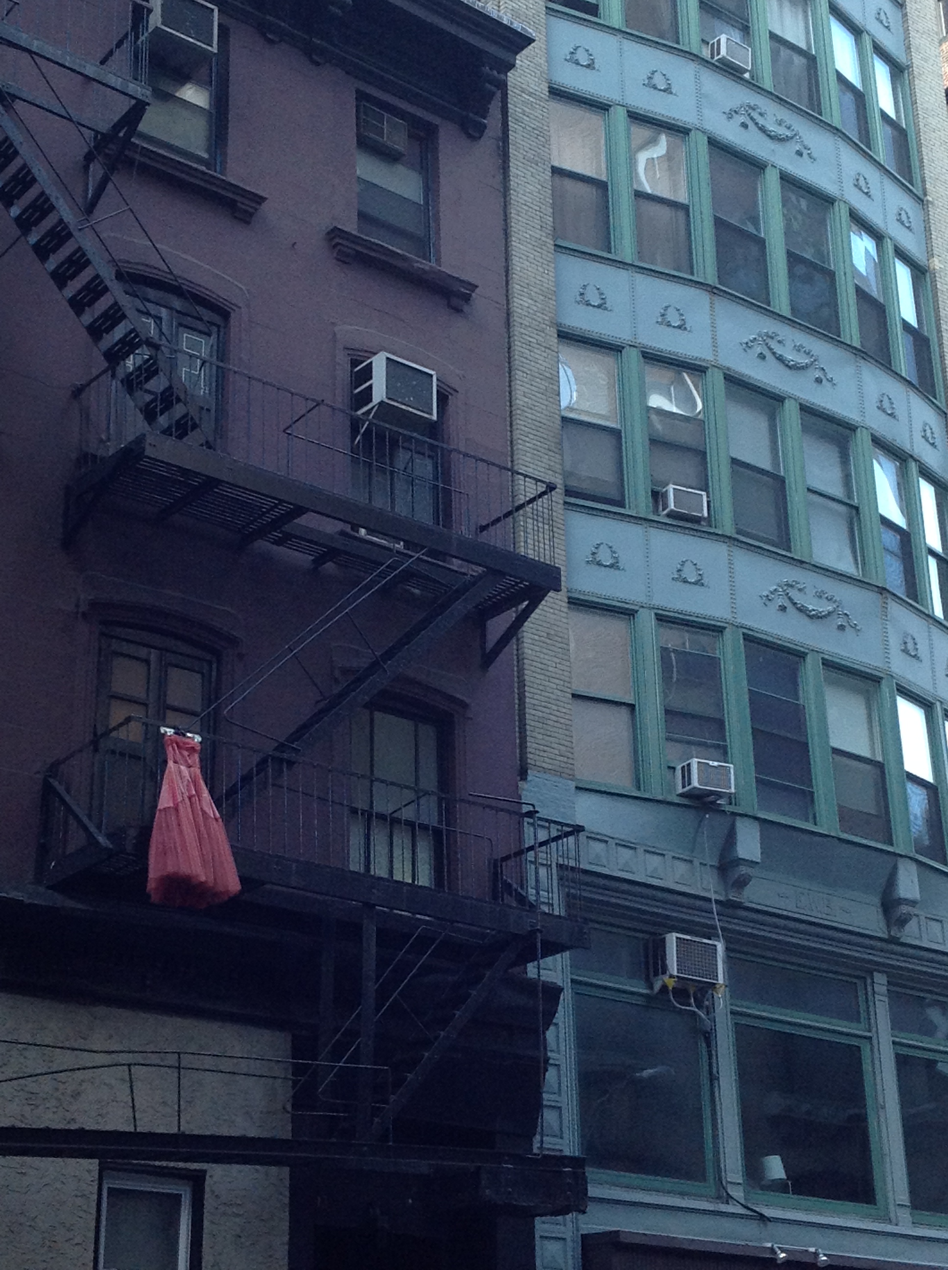 Returning later, she removed it from the tub, drained out the water, and refilled it with fresh for a rinse.  Gently she removed the dress, placed it onto a hangar and hung it outside to dry.