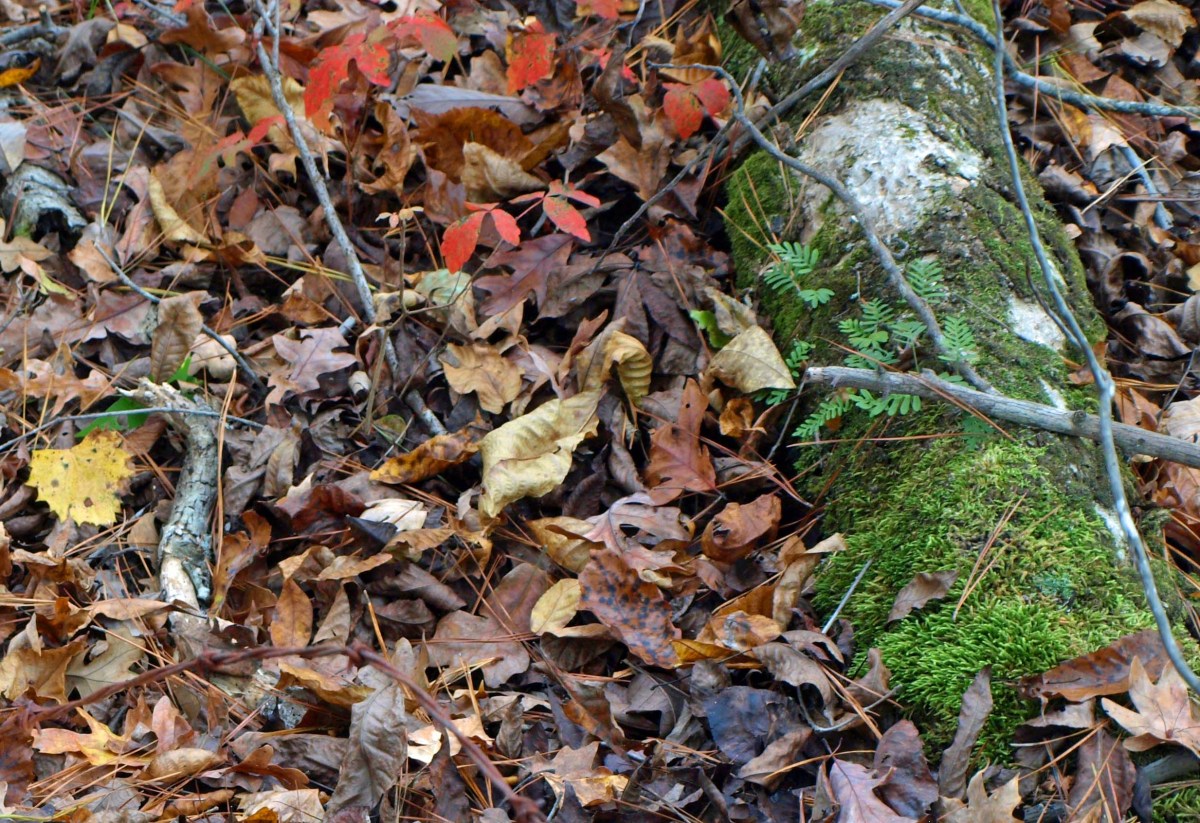 Lovely, mossy, ferny log… (Remember what I said about stacking that firewood?; )