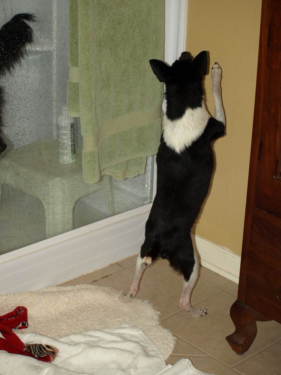 Not-foolin-let-me-in Previous Published July 14, 2014 at 1236 × 1648 in Buddy gets a bath Tucker: I’m serious now, Buddy, LET ME IN! You can’t hog all the fun ya’know…