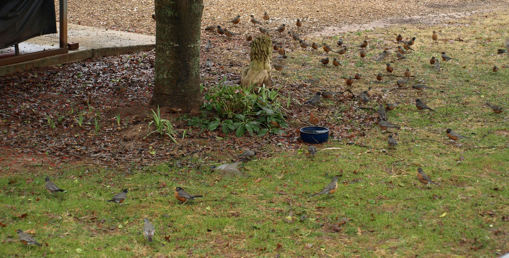 ROBINS! Previous Next Published February 25, 2015 at 1648 × 838 in The Robins Have Landed There were more than twice this amount up in the holly tree!