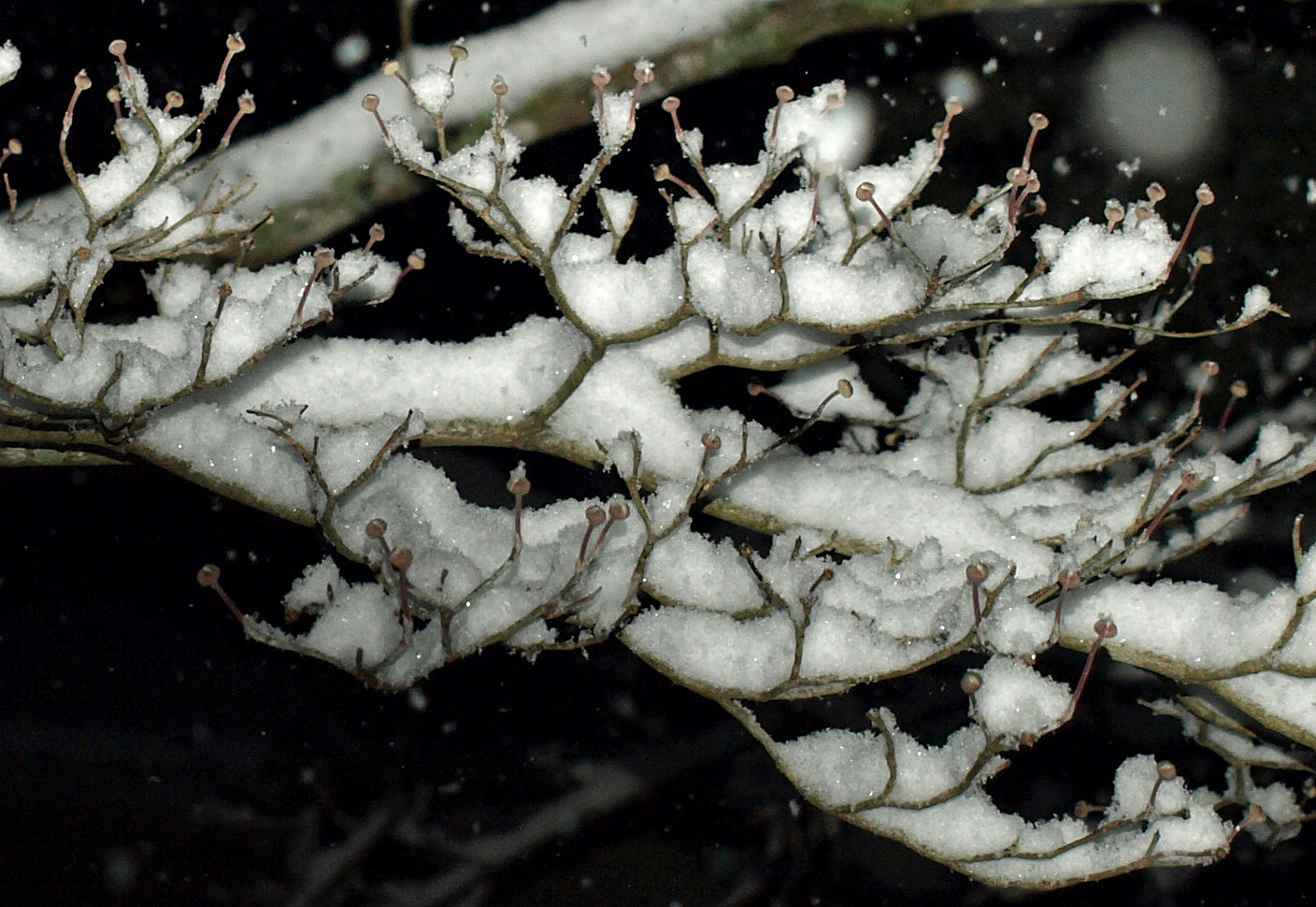 We don’t expect to see snow on a dogwood: a happy incongruity.