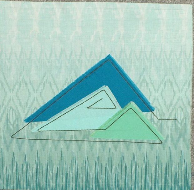 I do love this block! One of the clever things about it is that the fabric you’ve used for the background reminds me strongly of a thick forest of fir trees, with the mountains rising out of them. Simple, but gorgeous!