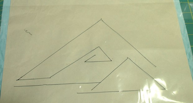 There is a bit of back story on this design. It was inspired by a Tattoo I spotted on a young woman’s arm. I did a Google search for “Delectable Mountain quilt block pattern” and voila!  Her arm popped up in the findings.  Generally speaking, I am not interested in tattoos, but this one is so different it caught my eye and was the inspiration for my quilt block.