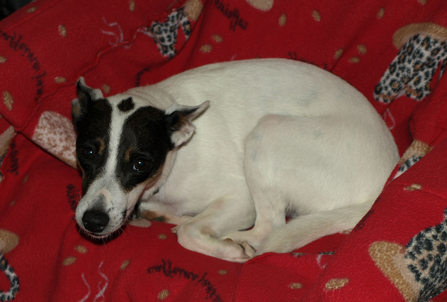 Noodle has his whole tail ~ yay! When he wags, it is wiggly, and looks a bit like a wet noodle.