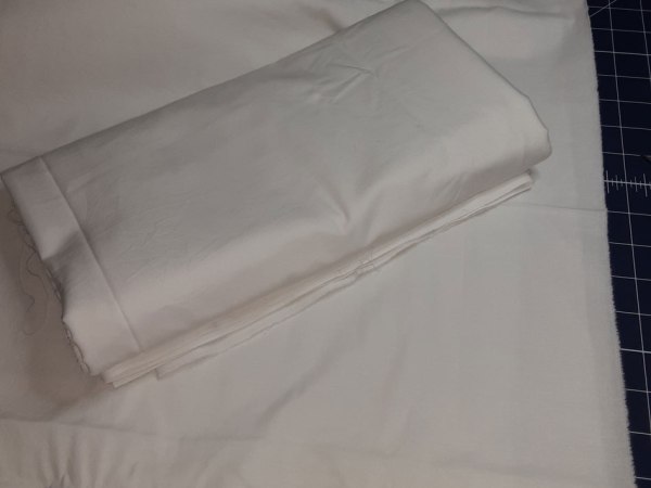 Taking the usable 18 inch zippers out of the old pillowcase covers saved me quite a bit. And going to the quilt closet I found percale sheeting that I had *purchased in quantity over ten years previous. It came in a queen sized width, and the bundle I chose was about seven yards total. I have used this cotton percale for many projects over the years.
