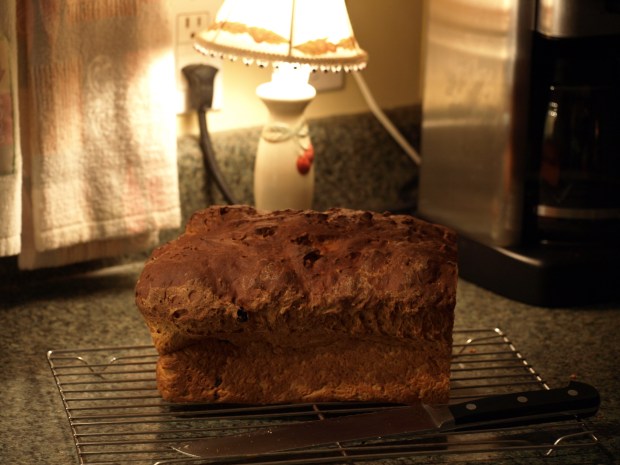 I baked a loaf of Gluten Free bread today from a mix by Bob’s Red Mill called “Homemade Wonderful Bread.”  But, as per usual I doctored it up.