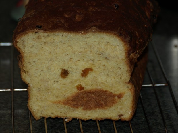 So how happy is homemade GF Oatmeal Golden Raisin Bread?  Well I cut off a slice and found that it was…
