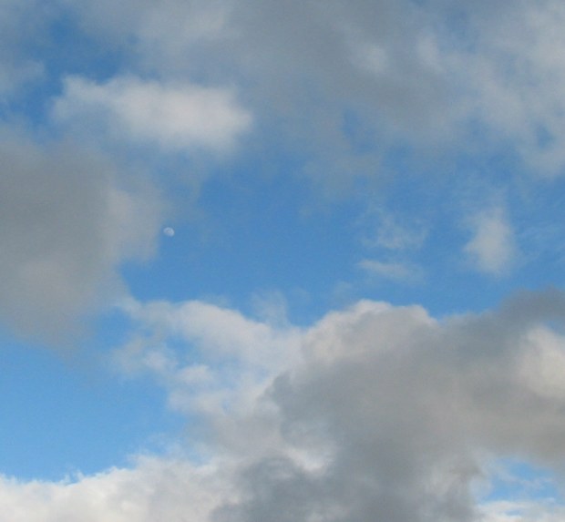 I got out the blue chalk, “Watch.” I said. And using the blue chalk I proceeded to outline a cloud on the white field. Then I lay the chalk on its side and carefully filled in the sky all around my cloud, during which I heard such things as…