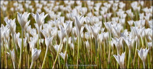 Recently, there were rains over a large portion of Texas, and in the Austin area Steve Schartzman was able to find a very large colony of these beautiful Rain Lilies.  That is the colony in the picture above and their name tells you their story.  When rain comes it takes only a few short days and the lilies spring forth.  Sadly, their beauty is short-lived, but for the time they are here you may choose to take them for granted or, as he has done, go out and enjoy them,  photograph them, breathe in their fragrance, and share the experience with others.  In so doing, he has made his readers aware and they take notice of their environment, enjoying the loveliness of a fleeting little white lily.  An ephemeral in the floral world.