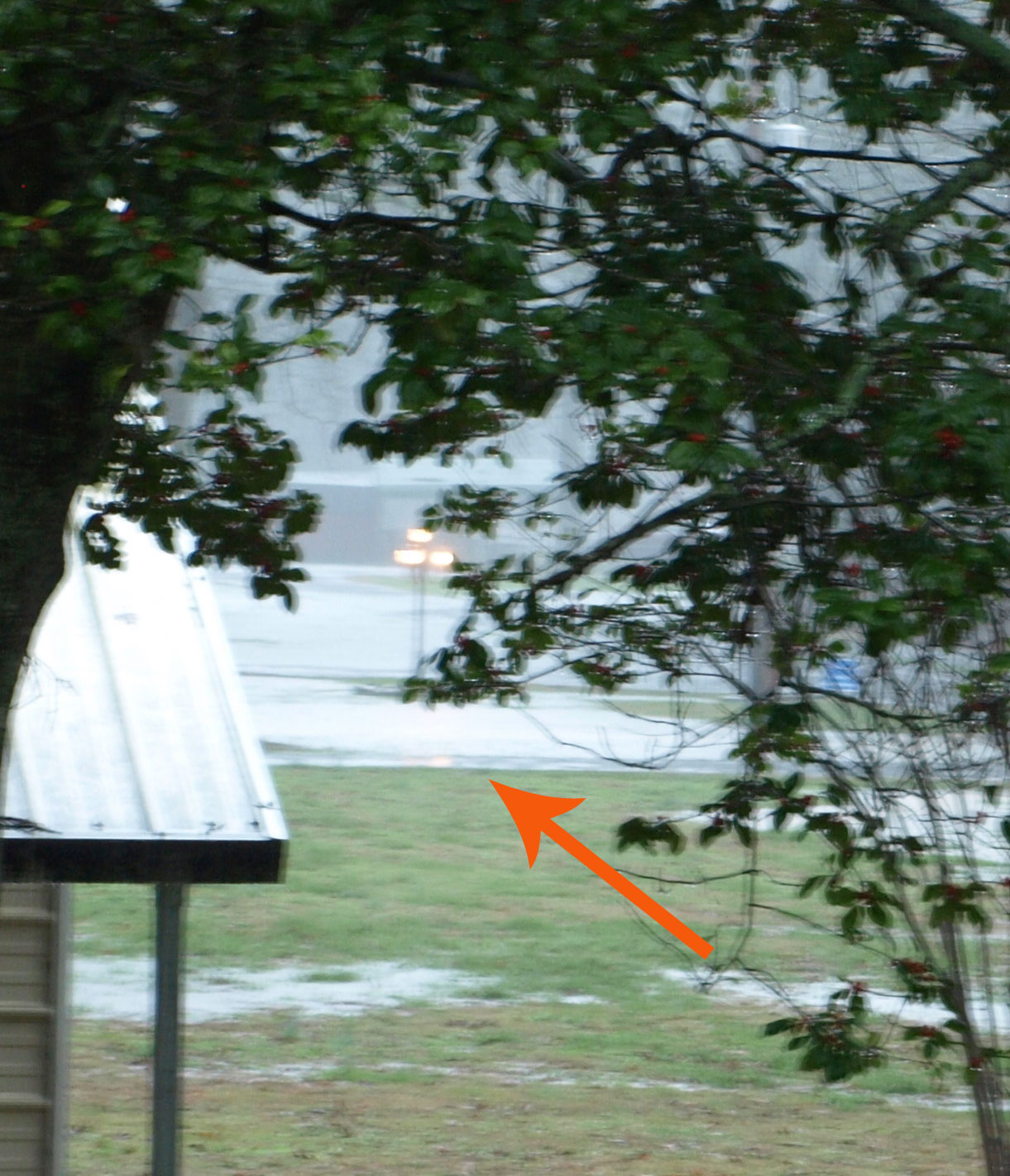 This is a *terrible picture, but you can see that the neighbors light pole now stands in a lake of water.