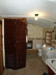 Today, after a parts delay, the construction of the new roof begins. It has to be done, it is expensive, but a sound roof will protect all our hard work on the inside. And while we have found some really rotten wood behind the walls in the kitchen and bath, we now have a brand new floor in the bathroom. We have also discovered that under the badly damaged sub-floor in the kitchen there are relatively new, and pristine beams to hold up the new flooring when we install it. That was a welcome surprise that will save us much labor and money.