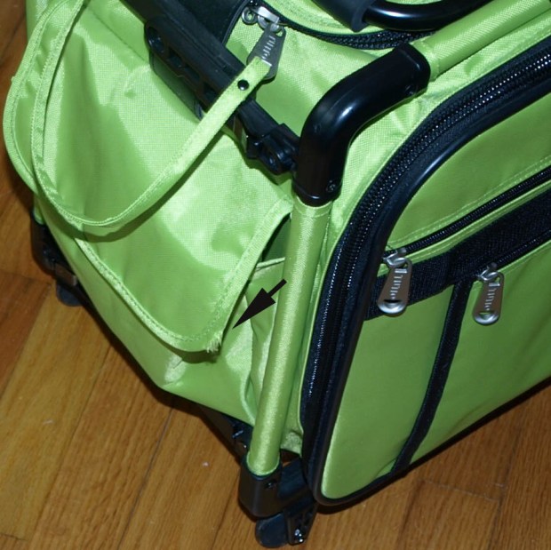 In my studio he is on lead and attached to the cutting table… and you guessed it, he found something to chew; my expensive Tutto Sewing machine buggy! It isn’t bad, but it is irritating.