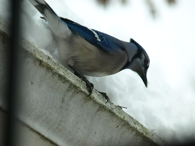 Eastern Blue Jays, who came to clear the acorns out of my rain gutters, called my attention to the need of a pressure washer for the coming spring!