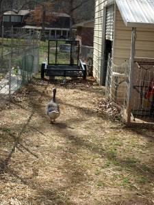 One day my goose Polly honked at me through the back door. She climbed right up the stairs to the mudroom door and honked loudly until I finally went to see her. Then she hopped down and began to walk away! She did this many times.