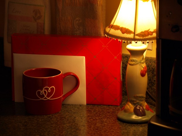 So Valentine’s Day has come and gone and I accomplished what I set out to do.  My pictures aren’t the greatest  (still haven’t sprung for the tripod) but they convey the mood and my meager success at celebration.  😉