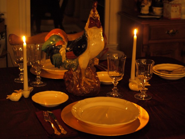 He went to get them and there were none to be had!  Poor Bob… he was really sad about it too!  I told him it was OK, and just put  the Ceramic rooster there instead, and then I moved him again when we sat down to eat, as he  is way too tall for a centerpiece!